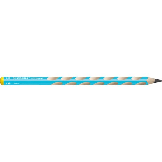 Ołówki STABILO EASYgraph dla leworęcznych. Kolor niebieski. Twardość 2B. Ergonomiczne ołówki o trójkątnym przekroju zapewniają wygodny chwyt podczas rysowania. Dostępne są w 2 wersjach: dla osób prawo- lub leworęcznych w kilku odcieniach kolorystycznych. Specjalny kod kolorystyczny umożliwiający rozpoznanie wersji: żółty kolor końcówki ? dla leworęcznych, czerwony dla praworęcznych. Specjalny lakier zabezpieczający przed brudzeniem strefy uchwytu. Nawet po zatemperowaniu palce znajdują wygodną pozycję do trzymania. Specjalne miejsce na wpisanie imienia. Dostępne twardości: HB i 2B. Średnica grafitu ? 3,15 mm. Posiadają certyfikat PEFC ? produkt ekologiczny. Produkty z serii EASYergonomics experts zostały wyróżnion eprzez rodziców i otrzymały oznaczenie ""NAGRODA RODZICÓW 2014"".