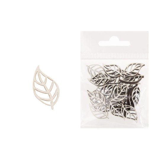 Drewniane liście jako artykuł dekoracyjny idealnie nadają się do decoupage, scrapbookingu czy jako dekoracja opakowań prezentowych, pudełek, kartek świątecznych itp. Charakteryzuje je wysoki poziom wykonania dzięki laserowej obróbce materiału. Produkt jest bezpieczny dla ludzi oraz środowiska i w pełni ekologiczny. Średnica pojedynczego elementu ok 25mm. Zapakowane w woreczek z eurowieszakiem, który zawiera 24szt kwiatków.