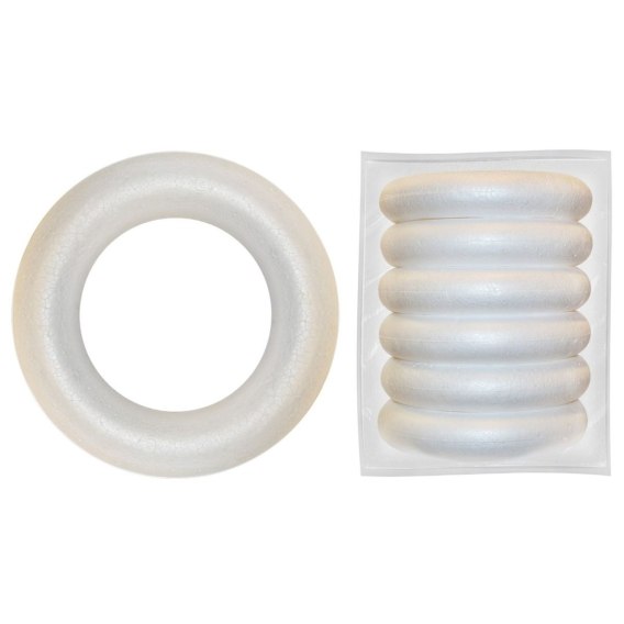 Oponki ze styropianu. Średnica zewnętrzna: 220 mm, średnica wewnętrzna: 130 mm. 6 sztuk.