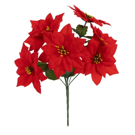 Bukiet świątecznych kwiatów poinsencji. Idealny do bożonarodzeniowych kompozycji ze sztucznych kwiatów. W bukiecie znajduje się 7 kwiatów gwiazdy betlejemskiej.