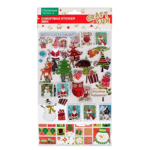 Zalety produktu: doskonale nadają się do zdobienia kartek okolicznościowych, albumów lub wystroju wnętrza, idealne do zdobienia świątecznych prezentów. Naklejki dekoracyjne CRAFT WITH FUN to fantastyczna i kreatywna zabawa, która pobudzi wyobraźnię. Używaj tych produktów w połączeniu z innymi akcesoriami oraz kompletami z serii CRAFT WITH FUN Zawartość opakowania: 3 woreczki z mixem naklejek. Wymiary/waga: wymiary opakowania dł. x wys. x gł. cm : 16x30x1, waga produktu w opakowaniu kg : 0,04 kg. Zestaw przeznaczony dla dzieci w wieku: 3 . Pakowany w folię z zawieszką. W inerze po 12 szt. W kartonie zbiorczym po 288 szt.