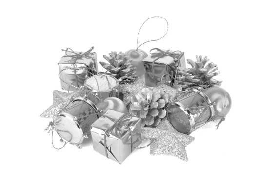 Zestaw 16 sztuk dekoracji o wymiarze: 3-4,5 cm do zawieszenia. W skład kompletu wchodzą: 3 dzwonki ozdobne, 3 szyszki, 3 bombki choinkowe, 3 prezenciki i 4 gwiazdki.