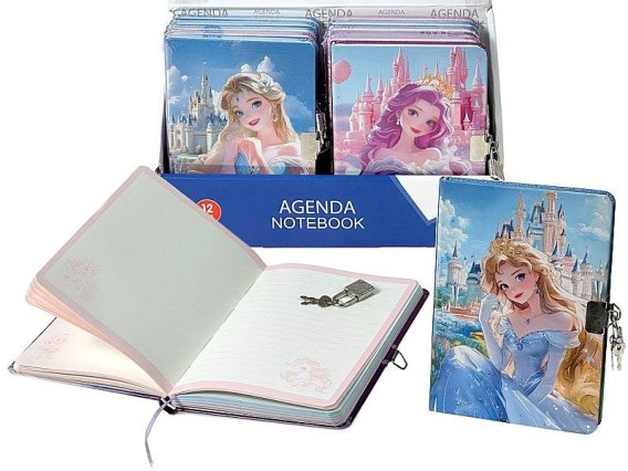 Pamiętnik B6 z kłódką, 18x12,5cm, wzór księżniczki, w linie, display 12szt; 29x18,5x11cm, Box