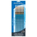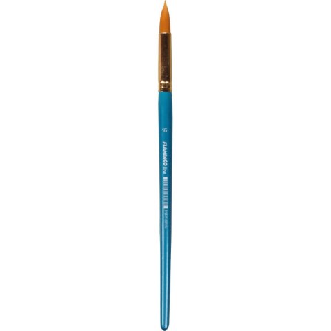 Pędzle artystyczne z włosiem syntetycznym. Wytrzymałe drewniane uchwyty w błękitnym kolorze, z oznaczeniem grubości pędzla. Sprawdzą się idealnie zarówno na zajęciach malowania farbami w szkole, jak i w domu. Rodzaj końcówki: okrągła. NR 16. Pakowane na blistrze po 6 sztuk.