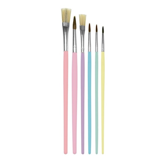 6 drewnianych pędzli w kolorach pastelowych