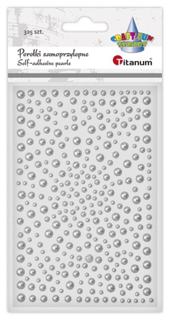 Perełki samoprzylepne, wzór: okrągłe, białe, średnica 3/4/5/6 mm. 325 sztuk.