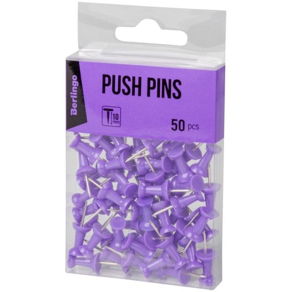 Wysokiej jakości pinezki w jasnych, ale intensywnych kolorach. Długość igły wynosi 10 mm. Opakowanie PVC: 50 szt. Kolor fioletowy.