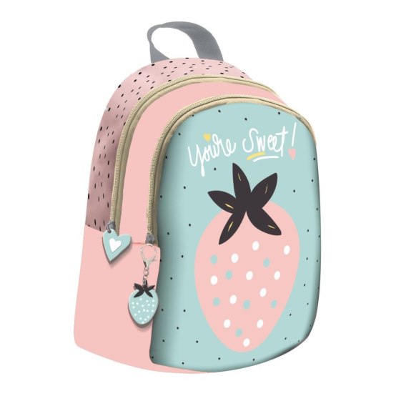 "Różowo - błekitny plecaczek z nadrukiem truskawki, to prawdziwy strzał w dziesiątkę dla wybrednych dziewczynek. Jest to model wykonany z trwałych i odpornych na uszkodzenia materiałów. Zastosowane do produkcji tworzywa nie stanowią żadnego zagrożenia dla malucha.Obrazek przedstawia różową truskawkę na błękitnym tle. Trzeba dodać, że opisywany plecak zapewnia najwyższą wygodę użytkowania. Tylna komora elastycznie dopasowuje się do kręgosłupa.Opis plecaczka przedszkolnego