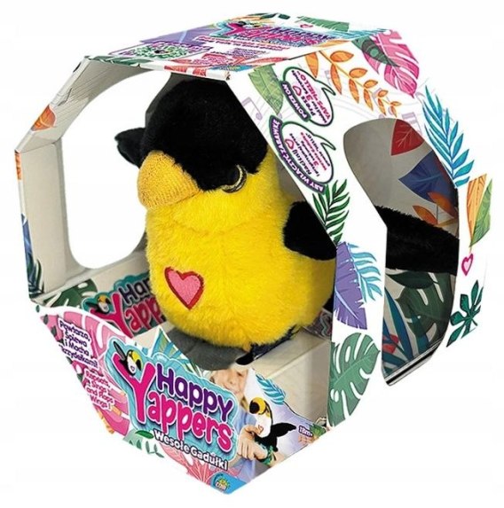 Happy Yappers /IT-9596/ Wesołe Gadułki - Wilga Interaktywna pluszowa wilga z serii Happy Yappers. Zabawka reaguje na dźwięki i ruch - porusza się, wydaje odgłosy i gada, zapewniając dzieciom dużo radości i ś z miękkiego, bezpiecznego materiału.Idealna do zabawy i przytulania. Happy Yappers - Wesołe Gadułki Interaktywne pluszowe ptaki, które śpiewają, mówią, potrząsają skrzydłami i rozmawiają między sobą. Zabawki ładują się przez USB - bez wymiany baterii. Dostępne modele (sprzedawane osobno): * Tukan * Flaming * Wilga * Czerwona papuga * Kakadu * Niebieska papuga Specyfikacja (dot. wszystkich modeli): * Wysokość: ok. 20cm * Zasilanie: wbudowana bateria, ładowanie przez USB (kabel w zestawie) * Odtwarzanie dźwięku: gadające interakcje, odgłosy ptaków * Funkcjonalności: flapping wings, samoczynne rozmowy między ptakami, możliwość powtarzania słów * Materiał: miękki, bezpieczny plusz * Rekomendowany wiek: 3+ * Wysokość zabawki: ok. 20 cm * Wymiary opakowania: ok. 20 x 12 x 10 cm * Waga: ok. 0,3 kg * Zasilanie: Zabawki ładują się przez USB - bez wymiany baterii. * Rekomendowany wiek: 3+ Zabawka posiada funkcję automatycznego wyłączenia po czasie bezczynności. Produkt oficjalny, oryginalny.