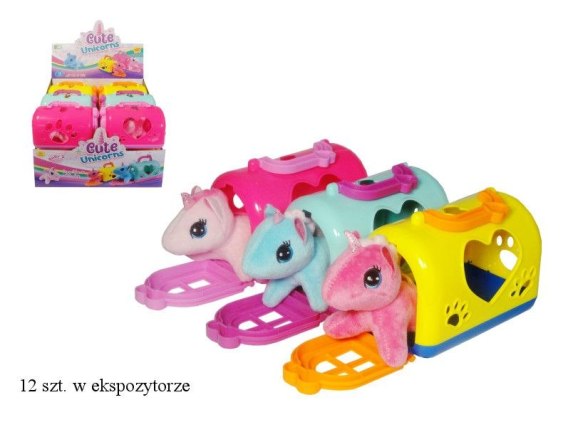 Pluszowy jednorożec wraz transporterem do przynoszenia. Teraz będzie mógł on towarzyszyć dziecku wszędzie. Transporter jest otwierany więc z łatwością dzieci wydobędą pluszaka. Produkt występuje w kilku wersjach kolorystycznych, wybierany losowo. Cena dotyczy jednej sztuki. Zabawka dla dzieci od 3 roku życia. Podane wymiary stanowią wymiar traksportera.