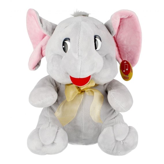 Pluszowy słonik to wspaniały, puchaty przyjaciel i niezastąpiony towarzysz do zabawy dla Twojego dziecka. Został wykonany z bardzo przyjemnego w dotyku materiału, a następnie wypełniony miękkim pluszem. Występuje w pozycji siedzącej i samodzielnie potrafi utrzymać równowagę. Jego przyjazny pyszczek z szerokim uśmiechem przyniesie radość i pocieszenie w gorszych chwilach. Duże, słoniowe uszy i długa trąba uniesiona w górę z pewnością przyciągną uwagę najmłodszych. Pluszowy słonik odznacza się ozdobną kokardką, która dodaje mu niepowtarzalnego uroku. Ponadto posiada doszytą zawieszkę. Zabawka generuje również realistyczne efekty dźwiękowe, które aktywują się po naciśnięciu brzuszka. Mięciutka przytulanka zapewni Twojemu dziecku spokojny sen i poczucie bezpieczeństwa w nocy oraz świetną zabawę w ciągu dnia. Dostarczy każdemu maluszkowi mnóstwo radości, stając się nieodłącznym kompanem na wiele lat. Znakomicie sprawdzi się również jako wyjątkowy element dekoracyjny dziecięcego pokoju. Wymiar produktu: 28cm
