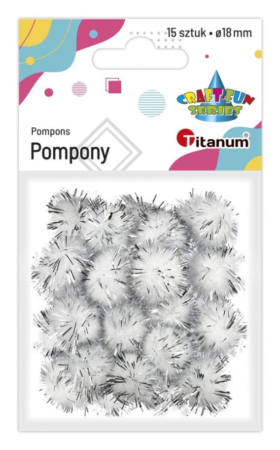 Pompony Craft-Fun Series brokatowe białe 15 szt Titanum (338524) Titanum