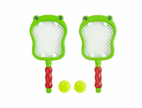 W zestawie: 2 rakietki w kształcie żabki, piłka, wym. produktu : 33 x 16,5 x 3 cm, wym. opakowania: 59 x 44 x 37 cm, 3+