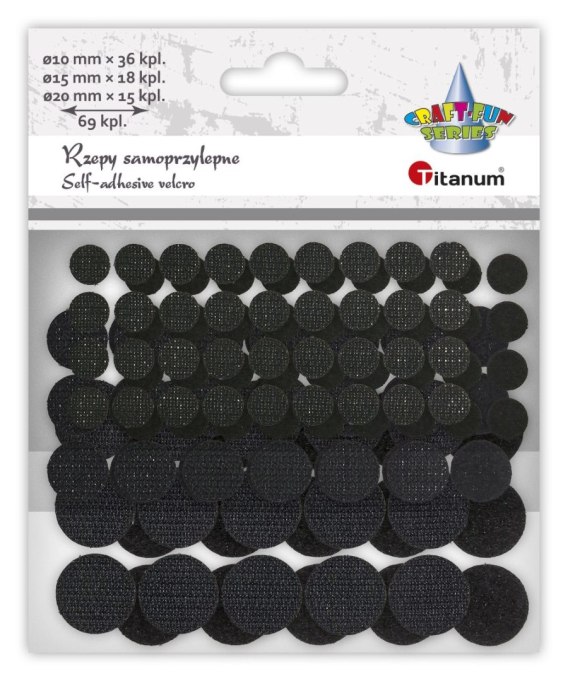 Rzepy Craft-Fun Series samoprzylepne czarne 3 rozmiary 69 szt Titanum (5903714546008) Titanum