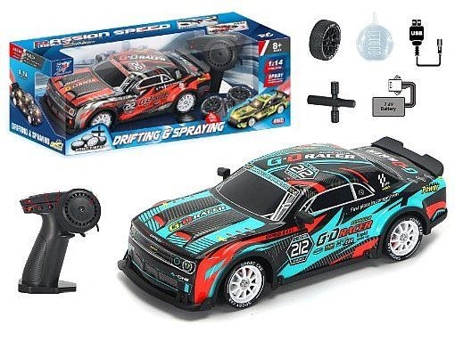 Samochód 1:14 na radio, driftujące, światła Led, funkcja pary z wydechu, dodatkowe koła Adar (630970) Adar