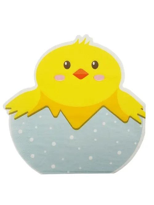 Serwetki wielkanocne z motywem kurczaczka w skorupce jajka.