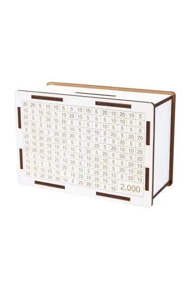 Drewniana, ekologiczna skarbonka z grafiką celu 2.000zł. Na powierzchni skarbonki znajduje się tabelka, w której można wykreślać kolejne wartości nominałów banknotów lub bilonu w miarę dodawania gotówki. Po wykreśleniu wszystkich pól skarbonka będzie zawierać 2.000zł Posiada specjalny otwór na górze do wrzucania monet i banknotów. Skarbonka CRESCO to świetny prezent dla każdego na różne okazje. Skarbonka nie zawiera zawartości, ale po zakupie jest od razu gotowa na przyjecie gotówki :) Skarbonka sprzedawana jest już złożona w opakowaniu foliowym.