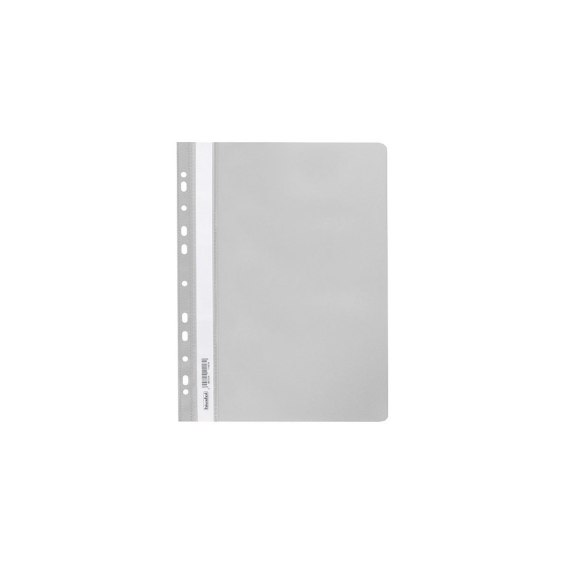 Skoroszyt wykonany z miękkiej folii PP z europerforacją umożliwiającą wpięcie do segregatora. Przednia okładka przezroczysta, aby łatwo zidentyfikować zawartość, tylna kolorowa. Wewnątrz klasyczny mechanizm z wąsem i listwą skutecznie zabezpieczający wpiętą zawartość. Na bocznej krawędzi wysuwany pasek do opisu zawartości. Dostępny w szerokiej gamie kolorystycznej.