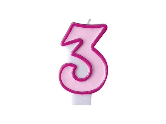 Świeczka urodzinowa Cyferka 3 w kolorze różowym, rozmiar 7 centymetrów.