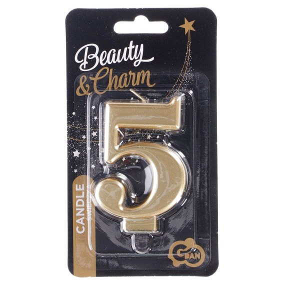 Świeczka cyfra 5 urodziny, metalik złota, 8 cm
