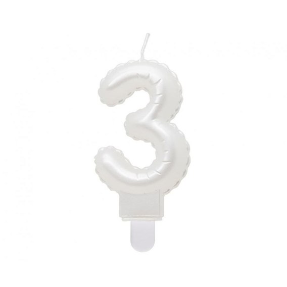 Świeczka B&C cyferka 3, perłowa biała, 7 cm