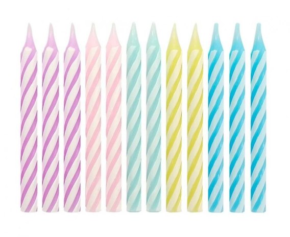 Świeczka urodzinowa kolorowe w białe paski, 24szt., 6 cm. Godan (SU-MP24) Godan