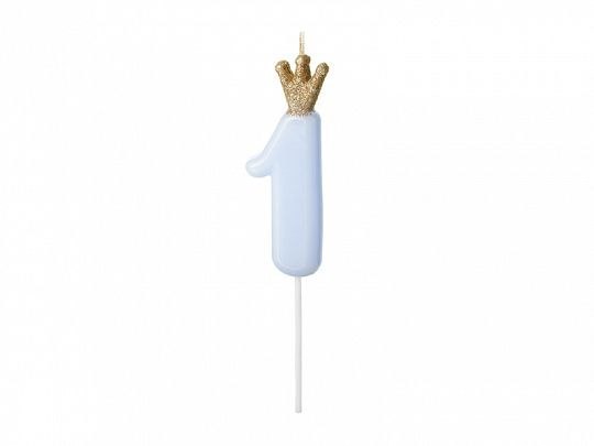 Świeczka urodzinowa Cyferka 1 w kolorze jasnoniebieskim, rozmiar ok. 9.5 cm.