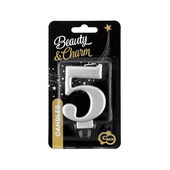 Świeczka urodzinowa cyferka 5, metalik srebrna 8 cm Godan (PF-SCS5) Godan