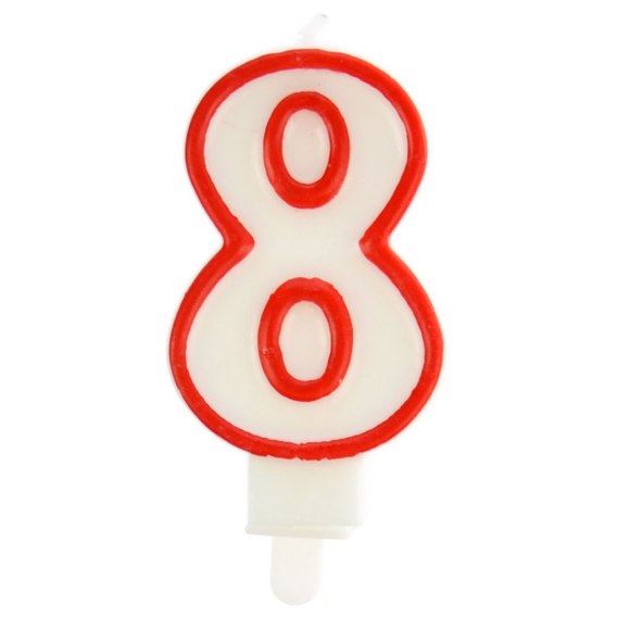 Świeczka urodzinowa cyferka nr 8 biała czerwona obwódka Arpex (DS0194CZE-8-9906) Arpex