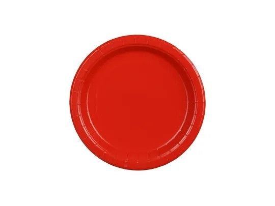 Talerzyki papierowe okrągłe w kolorze czerwonym, średnica ok. 18 cm. (1 op. / 6 szt.)