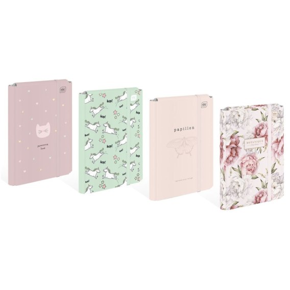 Format: A4+. Teczka w twardej oprawie dostępna w kilku modnych wzorach. Zamykana na szeroką i wytrzymałą gumkę. Doskonale chroni zawartość przed zniszczeniem. Wykonana z wysokiej jakości surowca.