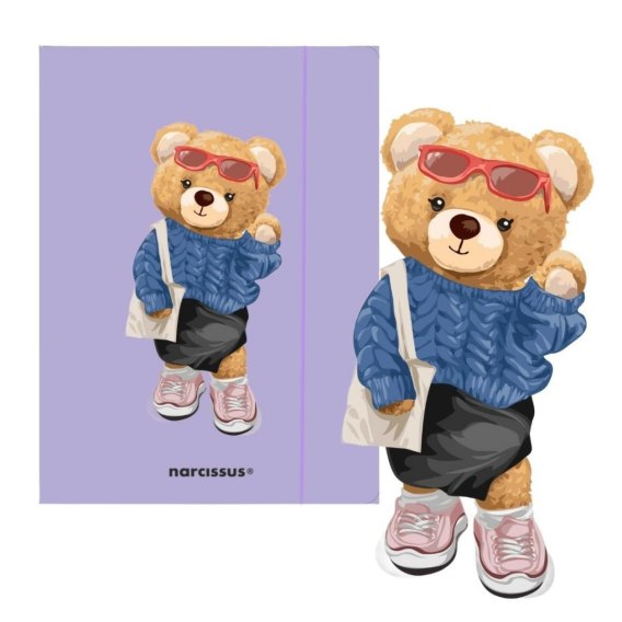 Teczka kartonowa na gumkę Teddies& Misia A4 fioletowy 270g Narcissus Narcissus