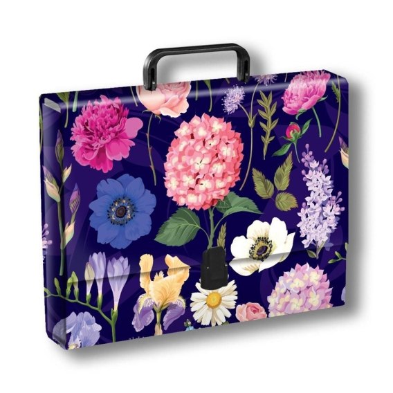 Teczka A4 z rączką Kwiaty polskie hortensja na ciemnym tle PENMATE