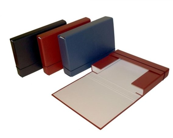 Wykonana ze sztywnej tektury 1,7 lub 2 mm oklejonej z dwóch stron elegancką okleiną. Szerokość grzbietu 9 cm . Zamykanie jej następuje poprzez delikatne rozciągnięcie gumki, zaczepionej o dwa metalowe trzymacze. Nie należy naciągać gumki mocniej, niż wymaga to otwarcie/zamknięcie teczki. Produkt jest przeznaczony do przechowywania i przenoszenia lekkich dokumentów, artykułów plastycznych lub biurowych oraz przedmiotów codziennego użytku, z wyłączeniem rzeczy niebezpiecznych i powodujących zapłon.