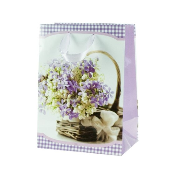 Torba ozdobna papierowa z połyskiem. Uchwyt ze skręconego sznurka. Dostępne również wzory świąteczne.
