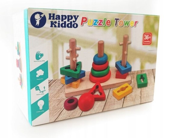 Zabawa polega na dopasowywaniu elementów tak, by otwory pasowały do danych drewnianych kołeczków. Ale uwaga - trzeba pogłówkować, ponieważ na przeszkodzie stoją boczne kołeczki!