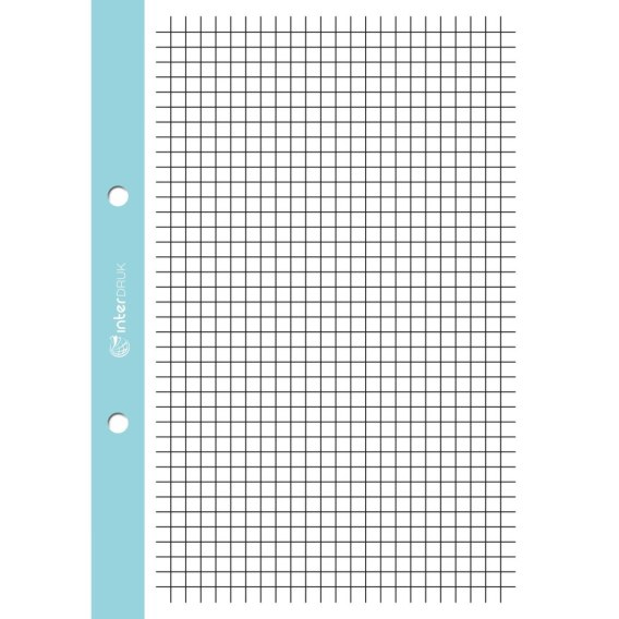 Wkład do segregatora w formacie A5. W opakowaniu znajduje się 50 kartek. Zadruk: kratka. 2 otwory do segregatora.