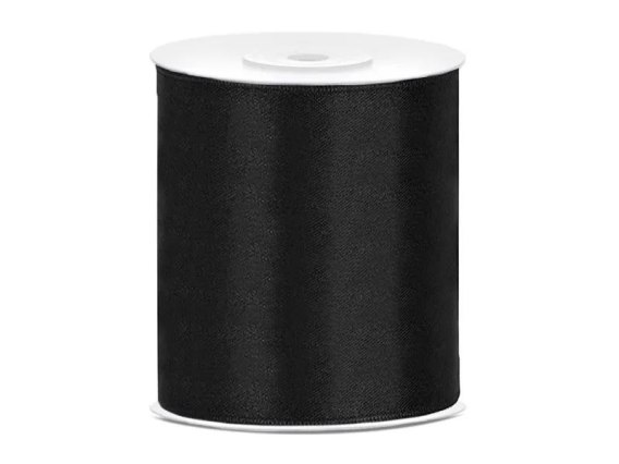 Wstążka satynowa na szpuli. Kolor: czarny, 50 mm x 25 m.