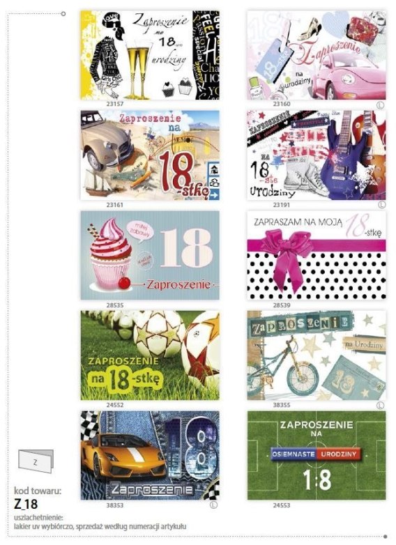 - zaproszenia są sprzedawane w zestawach po 10 szt. z każdego wzoru