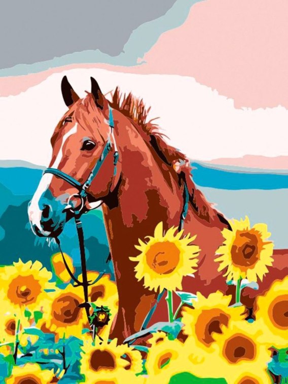 Zestaw kreatywny Malowanie po numerach 30x40cm Koń w słonecznikach Flamingo Line (FSY459) Flamingo Line
