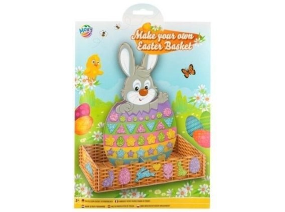 Zawiera on wszystkie elementy potrzebne do złożenia małego koszyczka lub ozdobienia pisanki przy użyciu dołączonych naklejek.