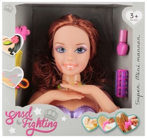 Zalety produktu: Rozwijanie wyobraźni, rozwijanie zdolności manualnych, rozwijanie pasji. Dzięki zestawowi do stylizacji MEGA CREATIVE, mała stylistka będzie mogła stworzyć niezliczoną ilość fryzur. Wszystko zależy od wyobraźni dziewczynki! Muzyka, śmiech dzieci bawią się szczęśliwie i czują się pewnie Zestaw zawiera: Głowę do stylizacji, grzebień do włosów, wałek do włosów, lakier do paznokci, spinka do włosów, gumka do włosów.. Całość wykonana z plastiku, gumy oraz sztucznego włosia. Wymiary/waga/baterie: wymiary produktu (dł. x wys. x gł.) [cm]: 19x20x10, wymiar opakowania (dł. x wys. x gł.) [cm] 27x26x11, waga produktu bez opakowania [kg]: 0,20 kg, waga produktu w opakowaniu [kg]: 0,42 kg, Nie wymaga zasilania bateriami. Produkt przeznaczony dla dzieci w wieku: 3+. Pakowany w kartonik z okienkiem. W kartonie po 24 szt.