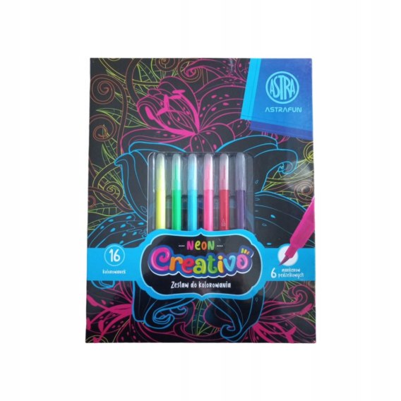 Zestaw do kolorowania Astra Creativo Neon 16 kolorowanek, 6 markerów