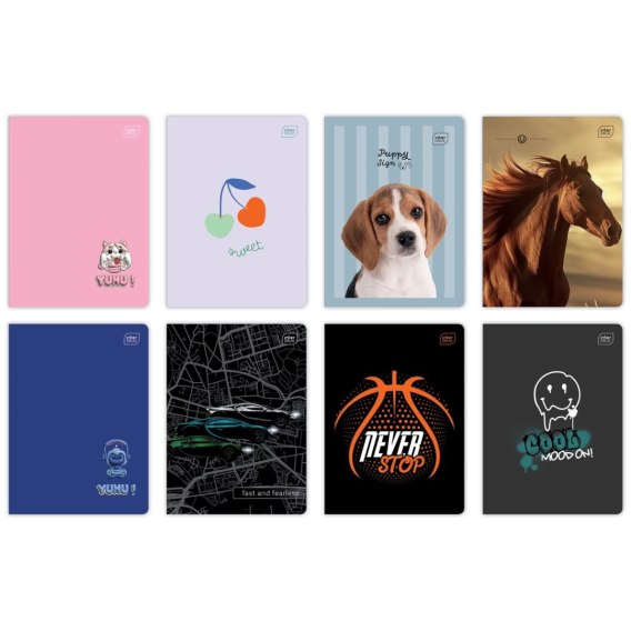Format: A5. Liczba kartek: 32. Zadruk w kolorową linię. Zaokrąglone rogi. Okładka pokryta lakierem UV.