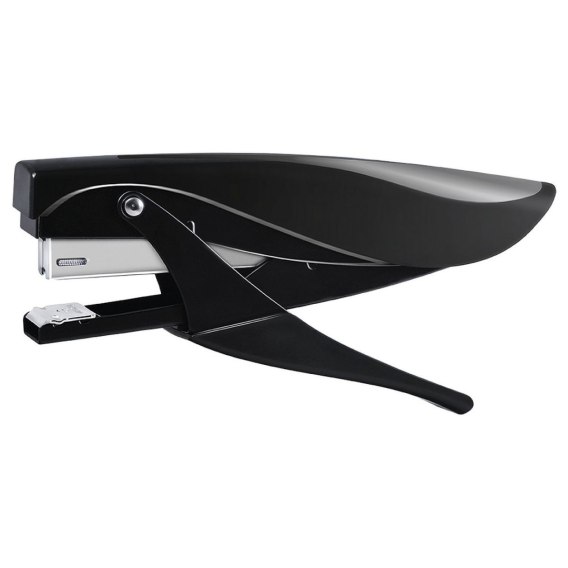 Zszywacz metalowy nożycowy z wykończeniem z tworzywa sztucznego. Części mechaniczne metalowe. Zszywanie zamknięte i otwarte. Dostosowany do zszywek o rozmiarach 24/6 - 26/6 mm. Zszywa do 25 kartek. Głębokość wsuwania kartek: 45 mm. Pojemność magazynka:150 zszywek.